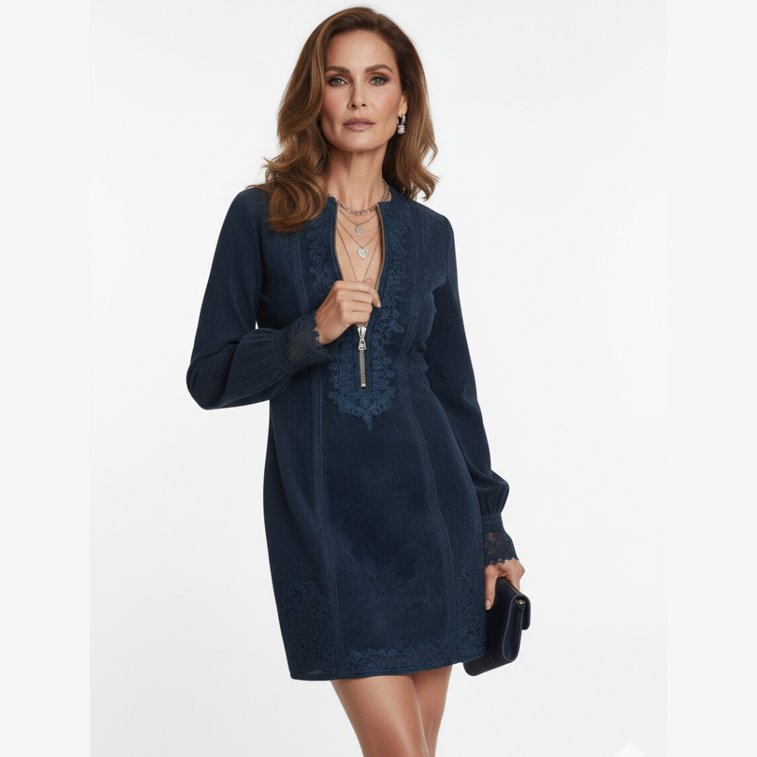 NapoliCo™ | Abito mini scamosciato Aurora con pizzo