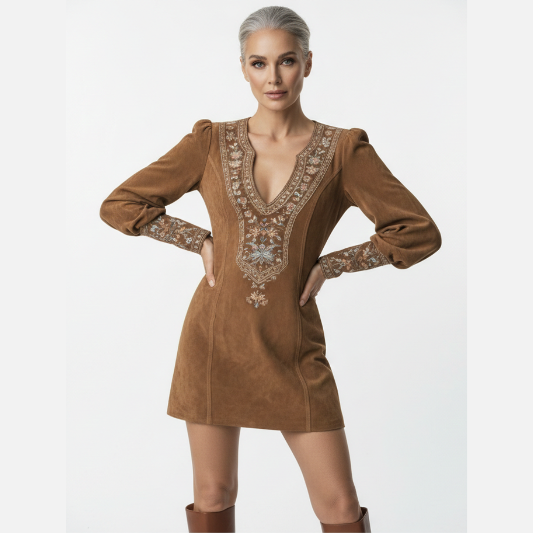 NapoliCo™ | Abito mini scamosciato ricamato Giada