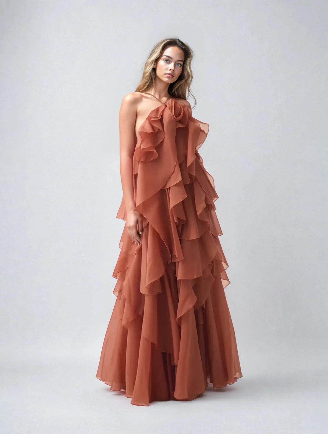 L'Abito Maxi Maliyah in Marrone Prugna emana un'eleganza senza tempo con un tocco moderno. Realizzato...