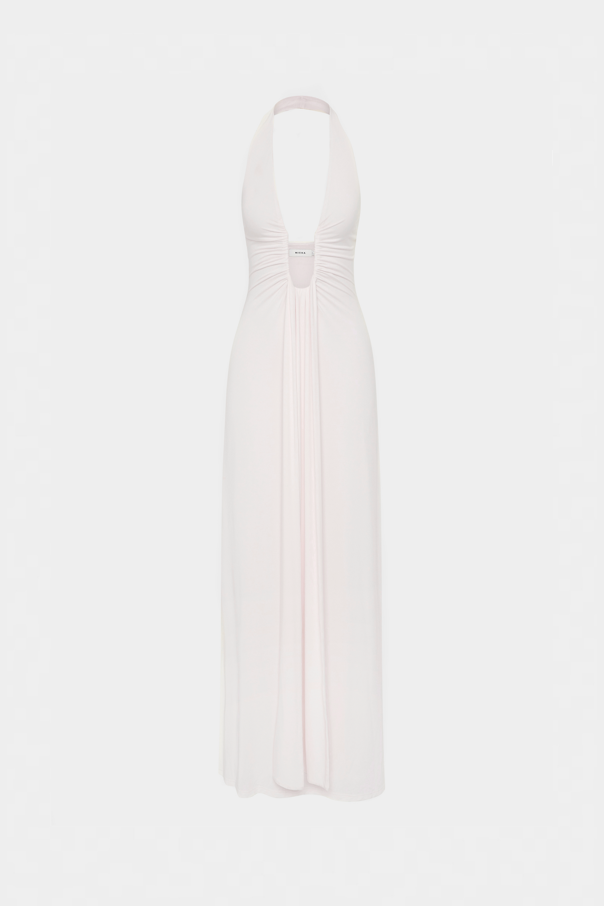 • Dettaglio drappeggiato e lunghezza maxi per un tocco scenico