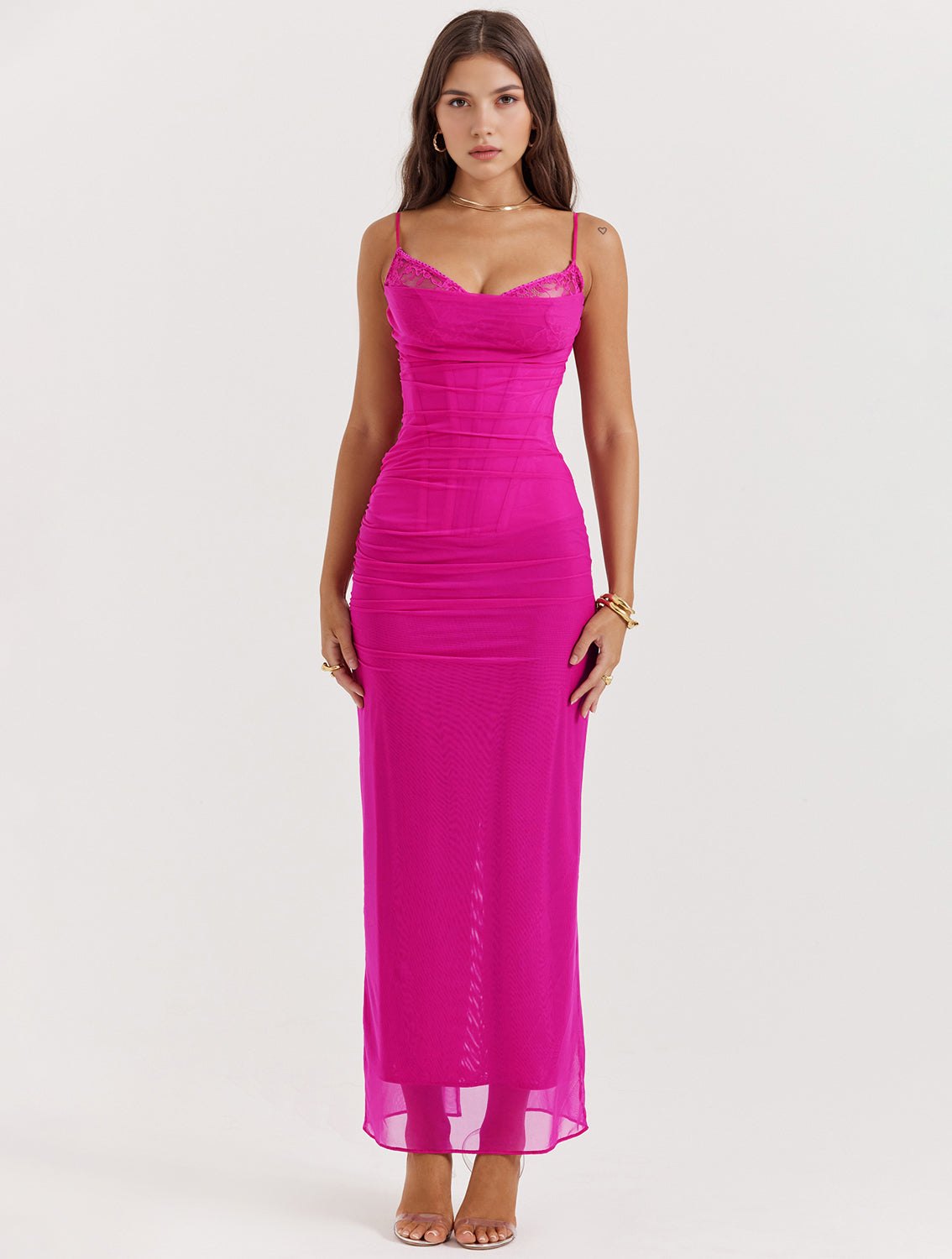 Dove il pizzo incontra il fascino – l'Abito in Mesh di Pizzo Aurelia è la perfetta combinazione di audacia e bellezza.