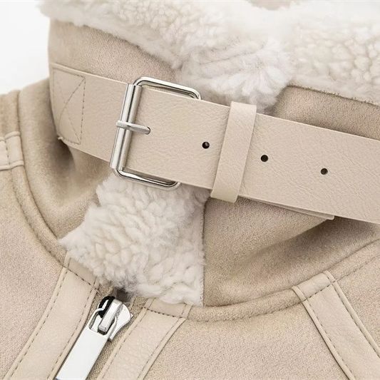 Se vuoi rimanere al caldo e alla moda durante i mesi invernali, Winter Glow è il modello che fa per te! Rispecchiando la moderna moda cittadina, questa giacca nei toni del beige offre eleganza e comfort grazie al suo esterno in morbida pelle scamosciata e ai dettagli in morbida pelliccia.