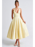 Immergiti in un'eleganza senza tempo con il Valeria | Abito Midi a Halter Corsetto, un incantevole punto culminante per ogni occasione speciale.