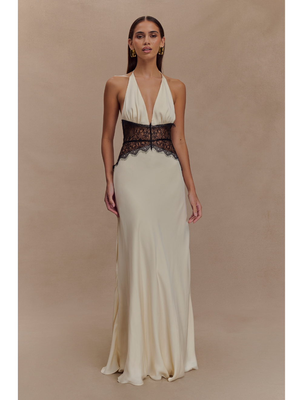 ZAFIRA Abito Maxi in Pizzo e Raso