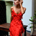 - Design romantico: L'abito con volant Rosaria presenta una silhouette lusinghiera con delicati volant che cadono sulla parte superiore e sulla gonna, aggiungendo un tocco di giocosità e femminilità al tuo look.